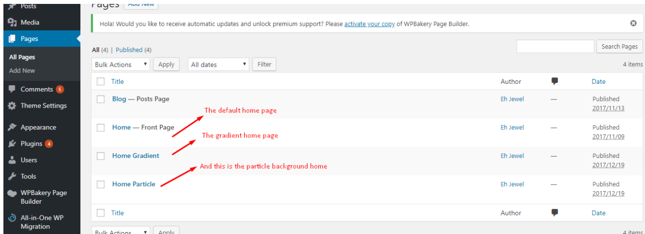 Also, you can set your Homepage demo as the Frontpage of your website from Settings > Reading.