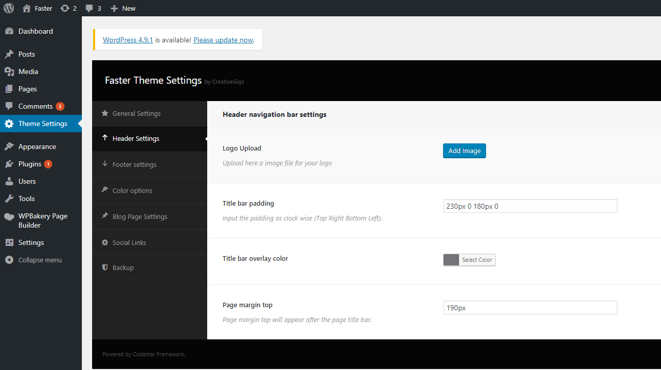 Tweaked Moved the ‘Theme Settings’ under ‘Docy Theme’ Menu in the dashboard